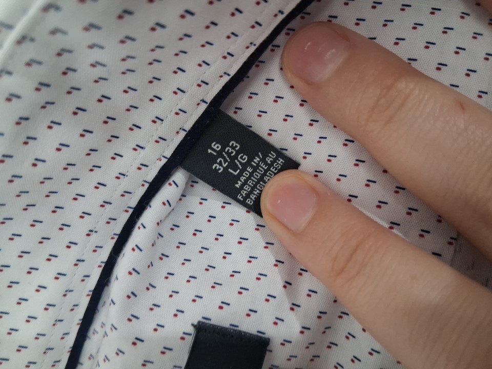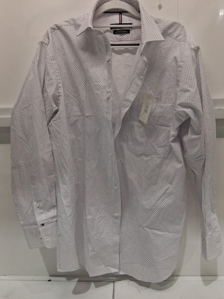 Men's Tommy Hilfiger Button Down Patterned Dress Shirt - Large (16 32/33) - white/navy blue/red (style: 4279222)