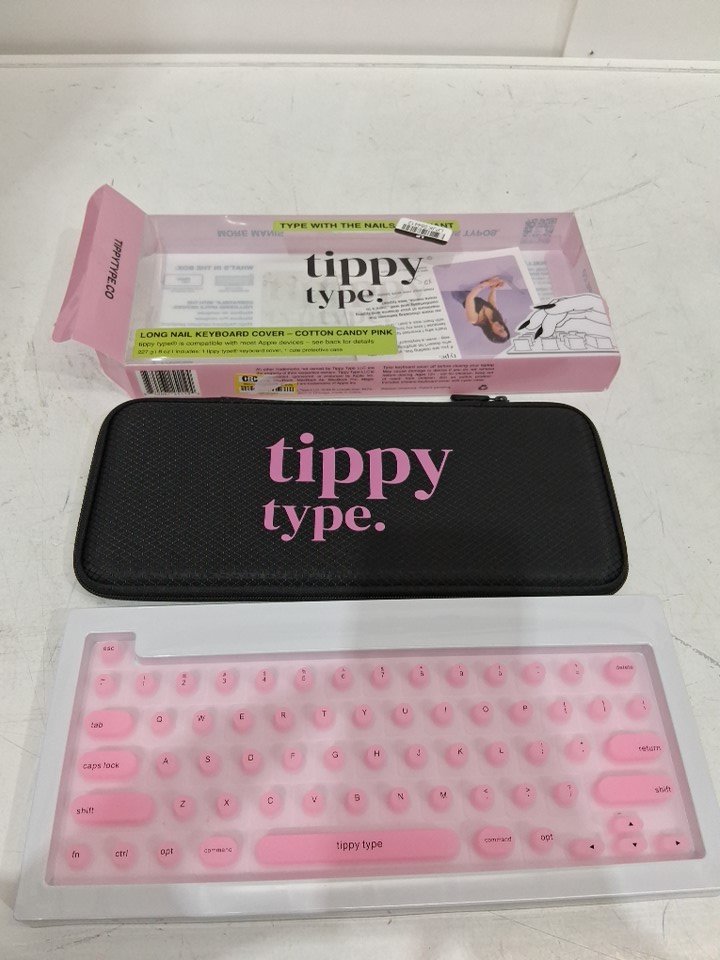 2PC TIPPY TYPE SILICONE LONG NAIL KEYBOARD COVER WITH HARD CASE - Compatible with most Apple Devices - COTTON CANDY PINK