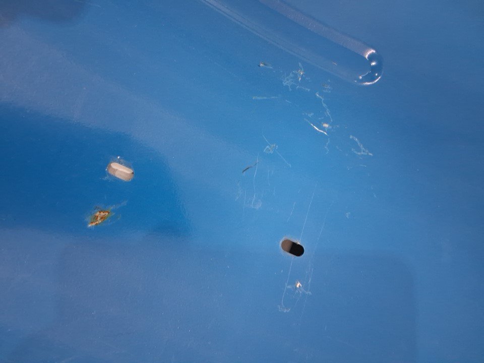 Products shovel area has some scratches and a spot of rust.