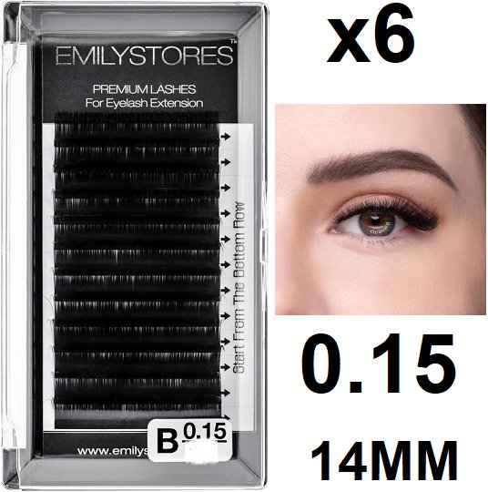 6 emilystores professional eyelash extensions - B curl - 0.15 - 14MM - BLACK