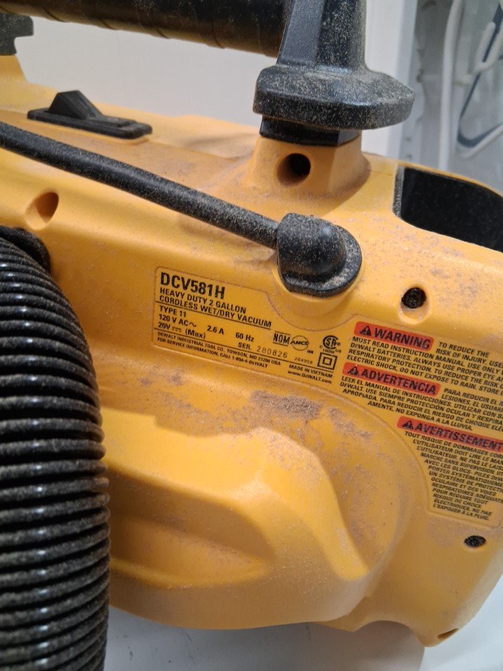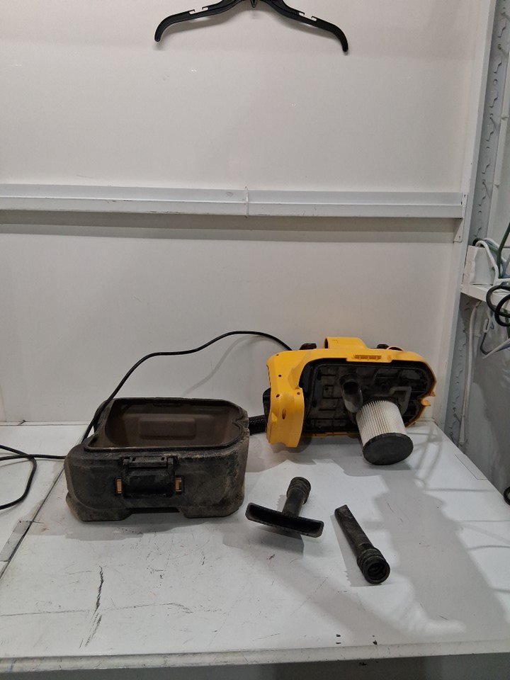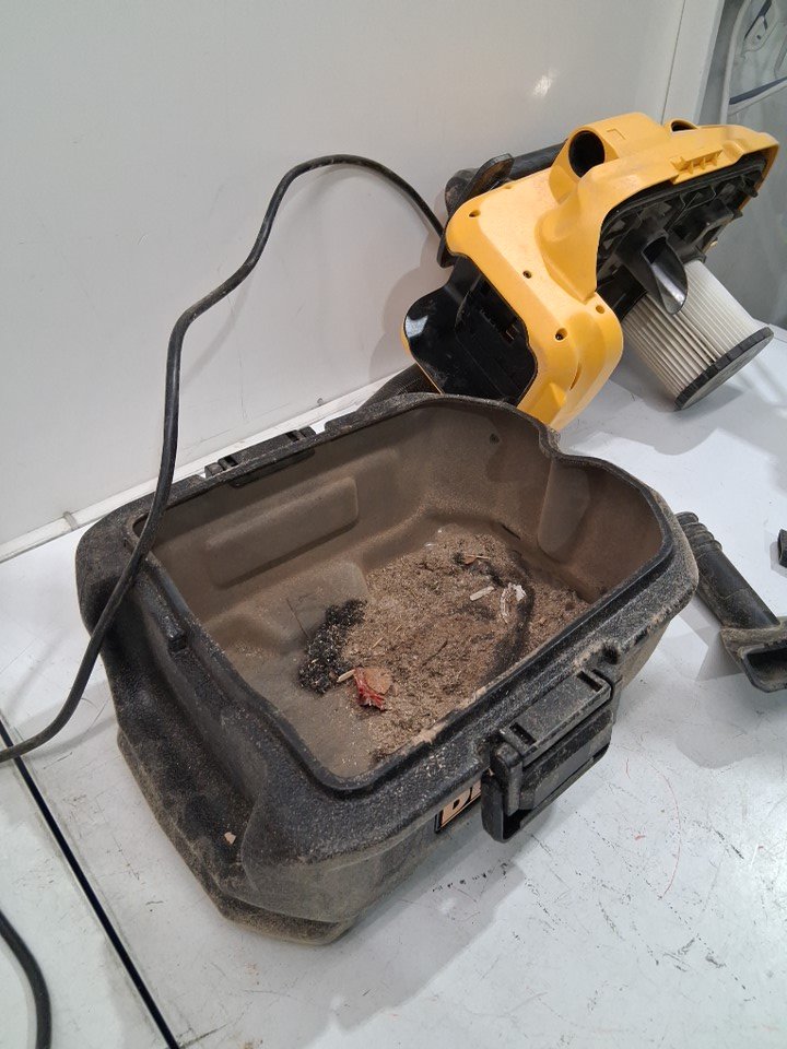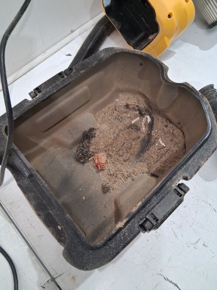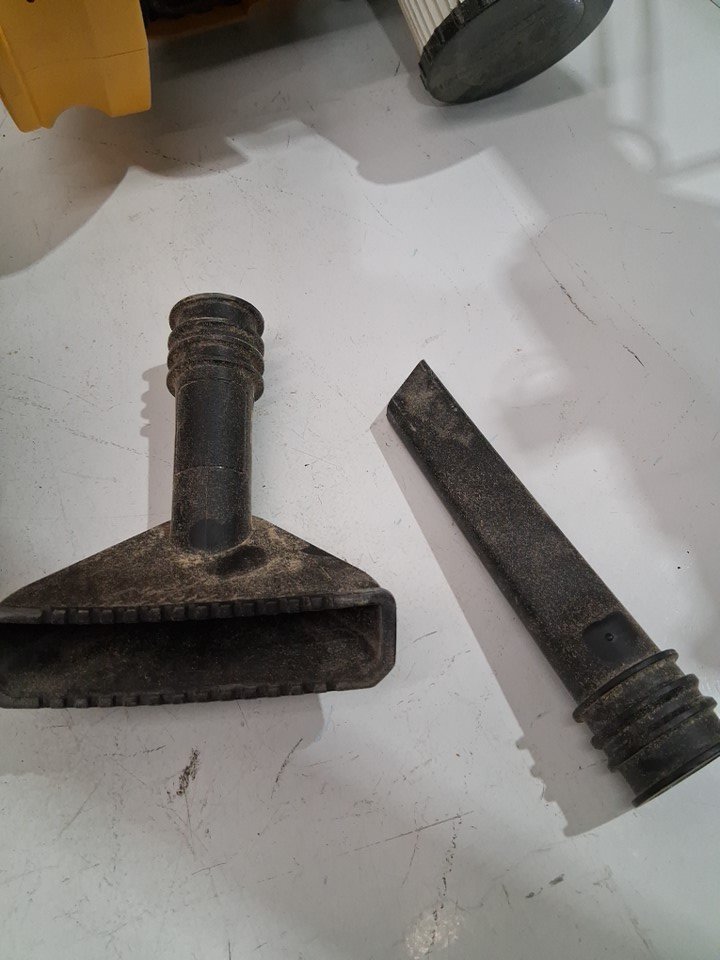 Products exterior is covered in sawdust as well as the inside filter and all the attachments and hose as well. inside there is an accumulation of wood debris and dust product will need to be cleaned before use. Product has been tested for power.