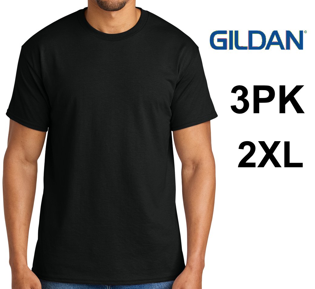 3PK Men's Gildan Crew Neck T-shirt - 2XL - black