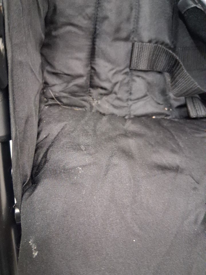 There are some crumbs/dirt residues on the seat and canopy & lower basket from previous use - see photos