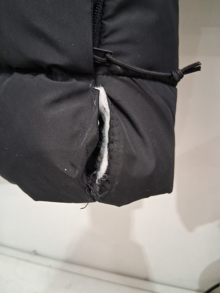 The seam has come apart under the right-hand pocket and has a faint odor needs to be washed - see photos