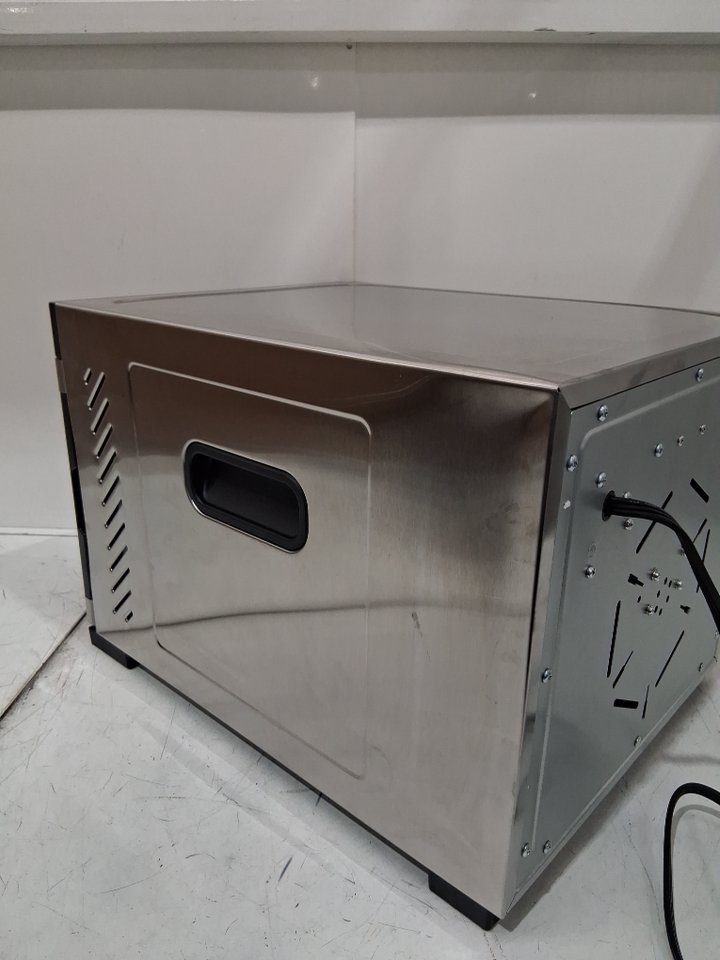 Please note that there is a small amount of food debris on the 2 of the trays & glass window (see photos) due to previous light use. Tested for power.