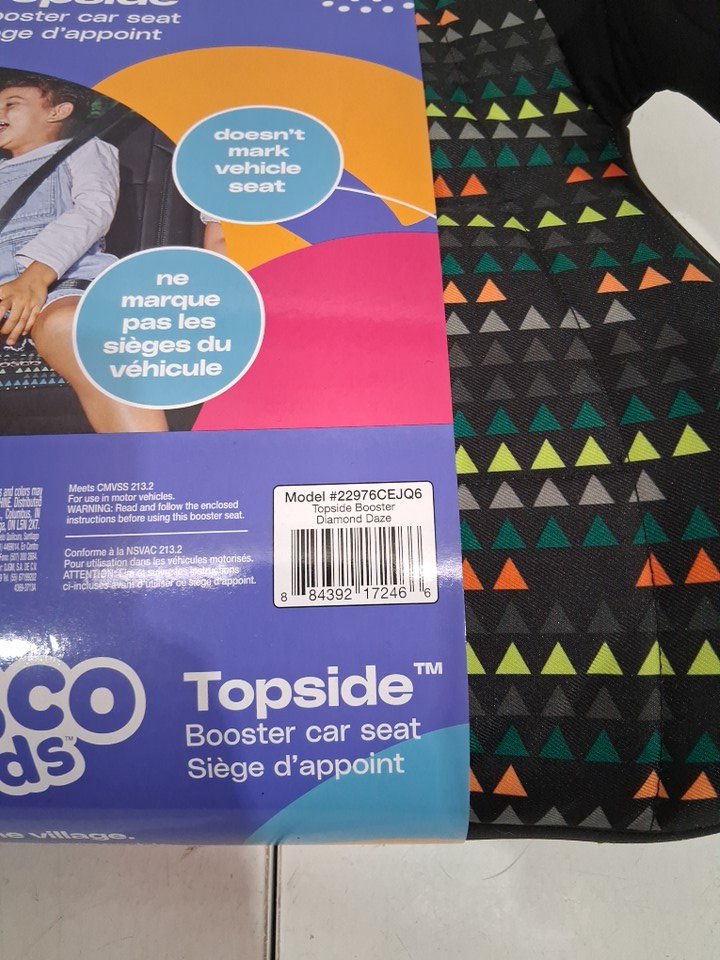 Cosco Kids Topside Lightweight Backless Belt-Positioning Booster Car Seat - 40-100LB MAX - diamond daze/BLACK/TRIANGLES (MODEL: 22976C-EJQ)