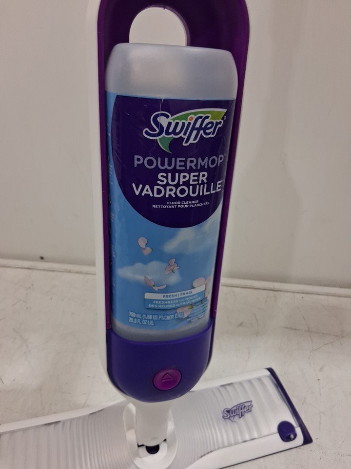 please note the liquid is lesser than half full, there are light scuffs on the mop head and the pads are missing, power and function were both tested