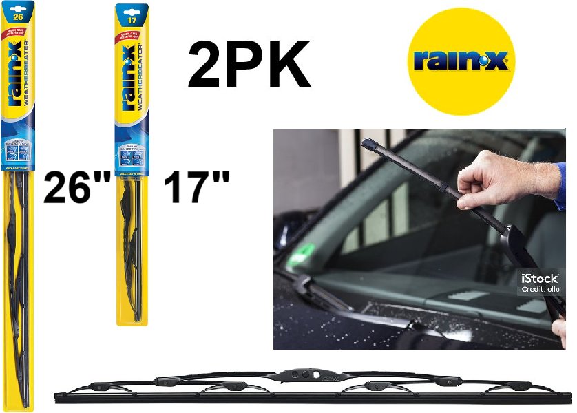 2PK RainX WeatherBeater Automotive Replacement Windshield Wiper Blades for Select Models - 26" and 17" - black (Model: 820248)