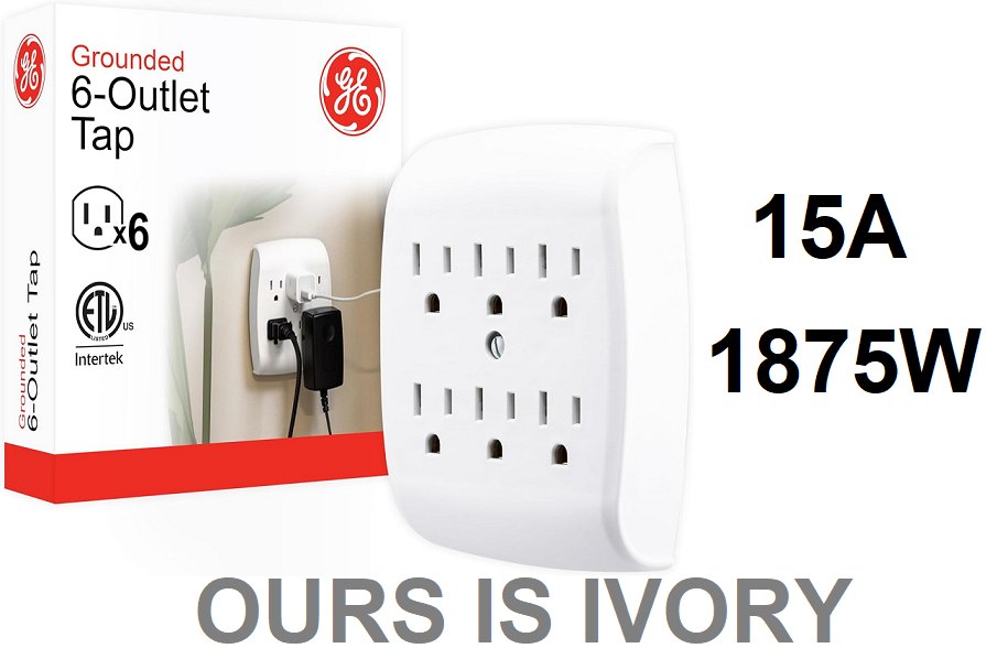 GE 6-Outlet Extender Wall Tap - 15A - 1875W - IVORY- (MODEL:54947)