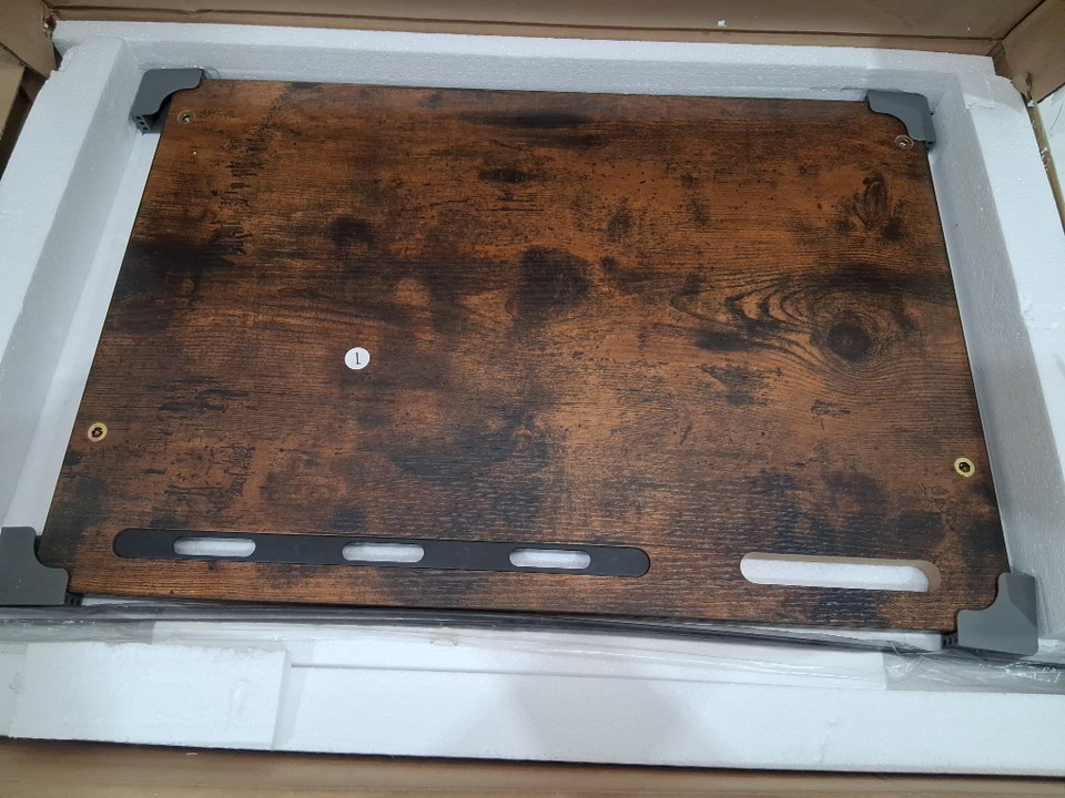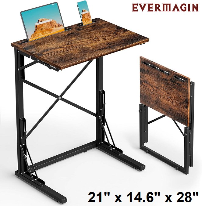 evermagin folding tv tray couch side table with slots for devices - 21" x 14.6" x 28" - Rustic Brown, Black (Model: TAB062)