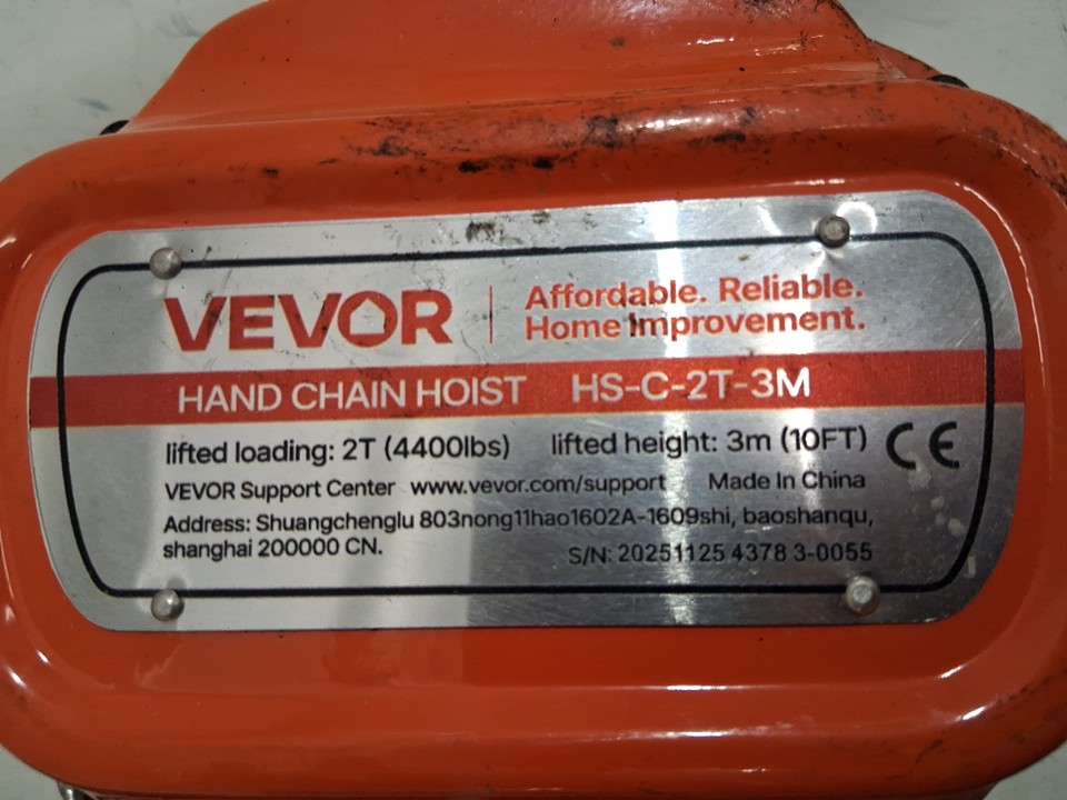 heavy duty manual hand chain pulley hoist block - 4400lb cap - 2 TON- 10ft - orange/black/silver (MODEL: hs-c-2t-3m)