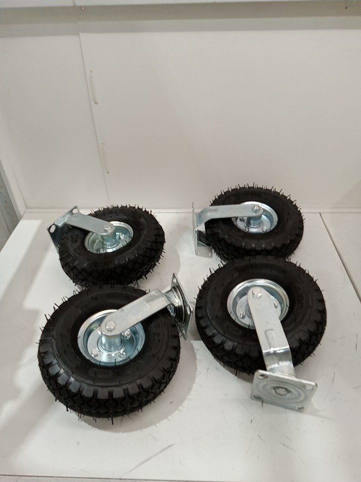 4pk pnuematic air swivel wheel replacement for farm carts - 10" - 30lbs capacity per tire - black