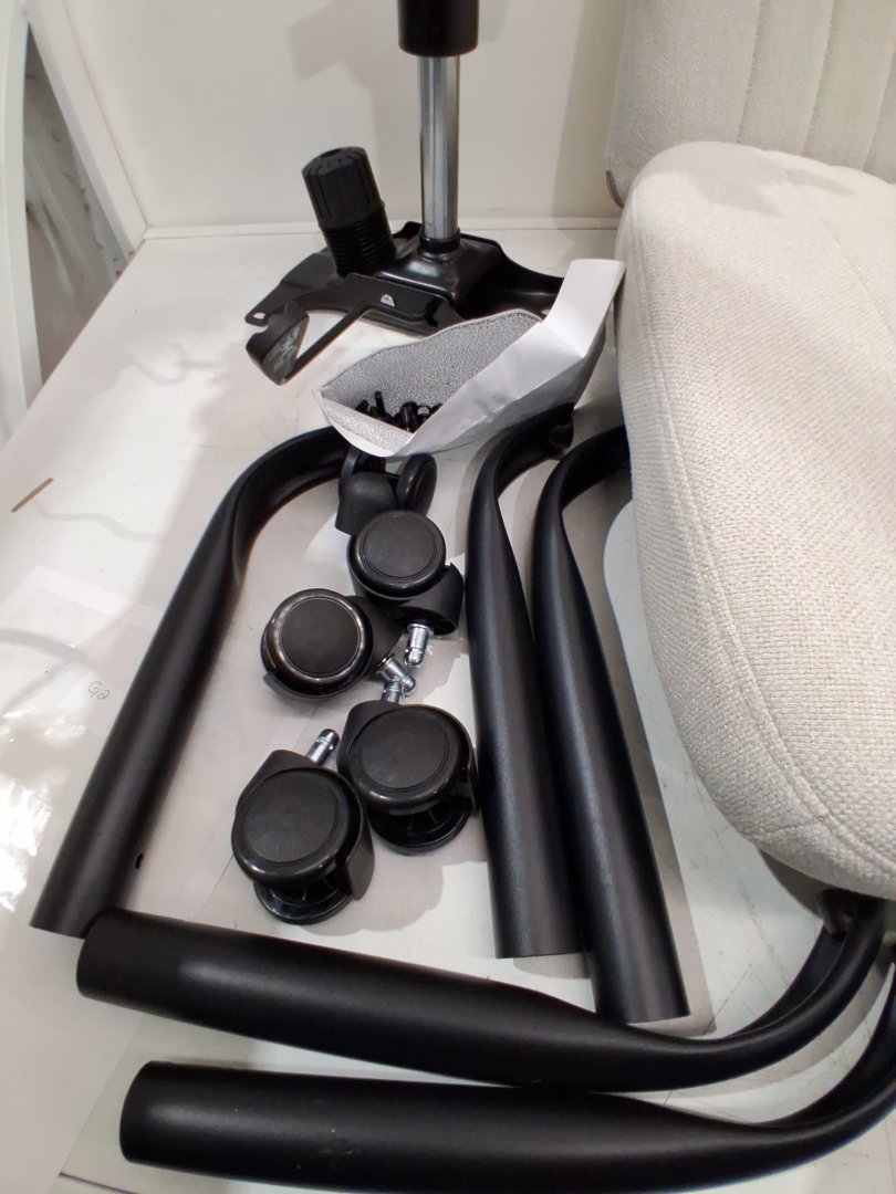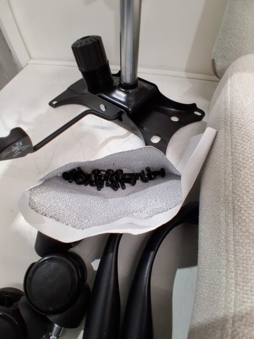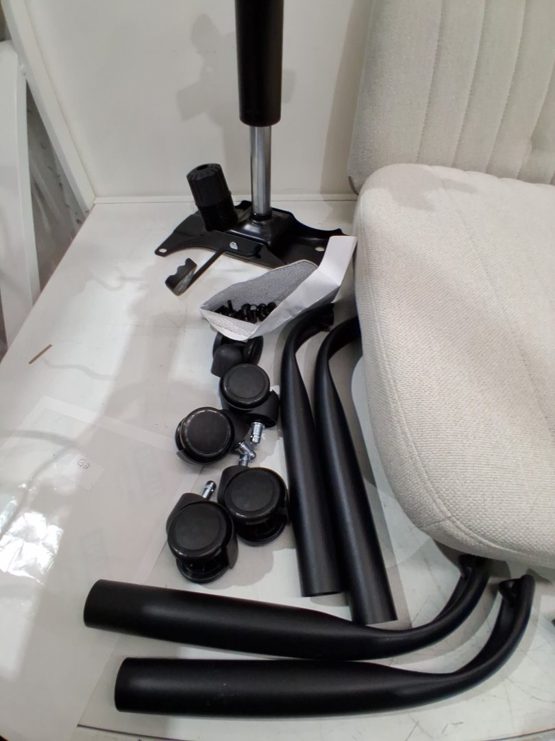Please note due to previous use/packaging and assembly generic hardware may be required and there is a small dirt spot on the top part of the chair - see photos