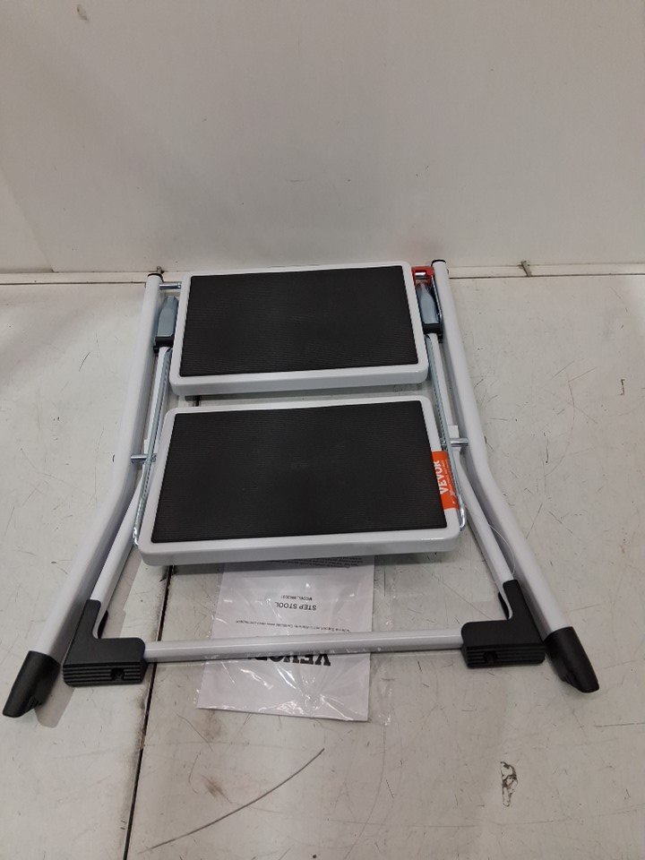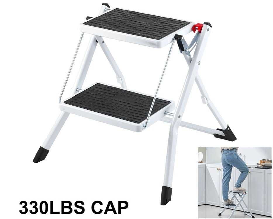2 STEP LADDER Folding Steel Step stool sturdy and anti slip - 330LB CAPACITY - white - (MODEL:Wk2031)
