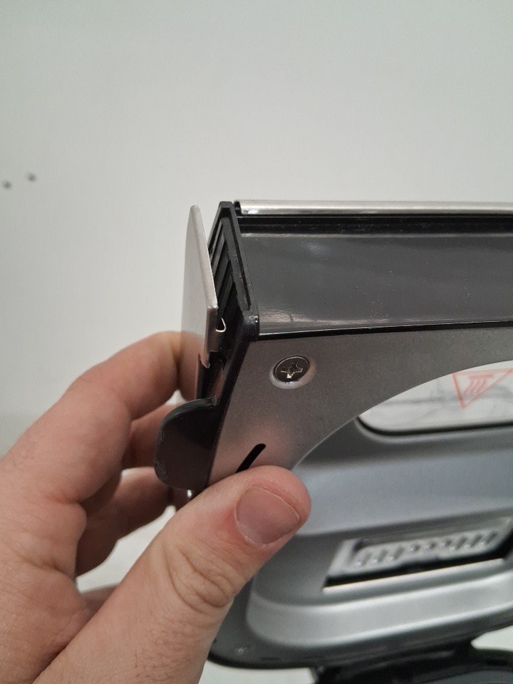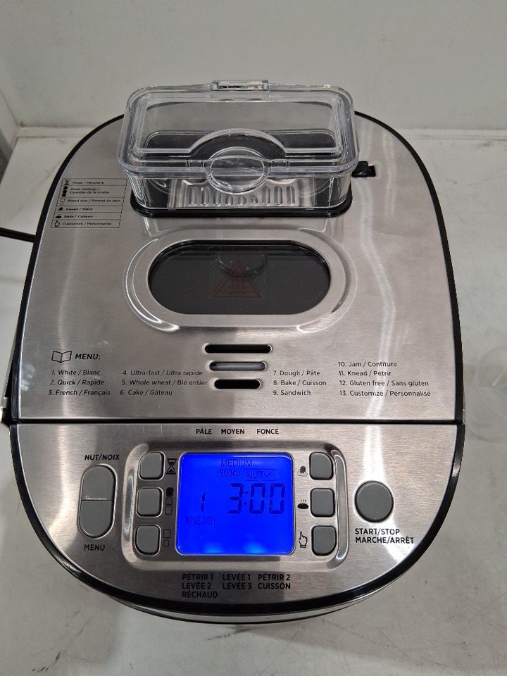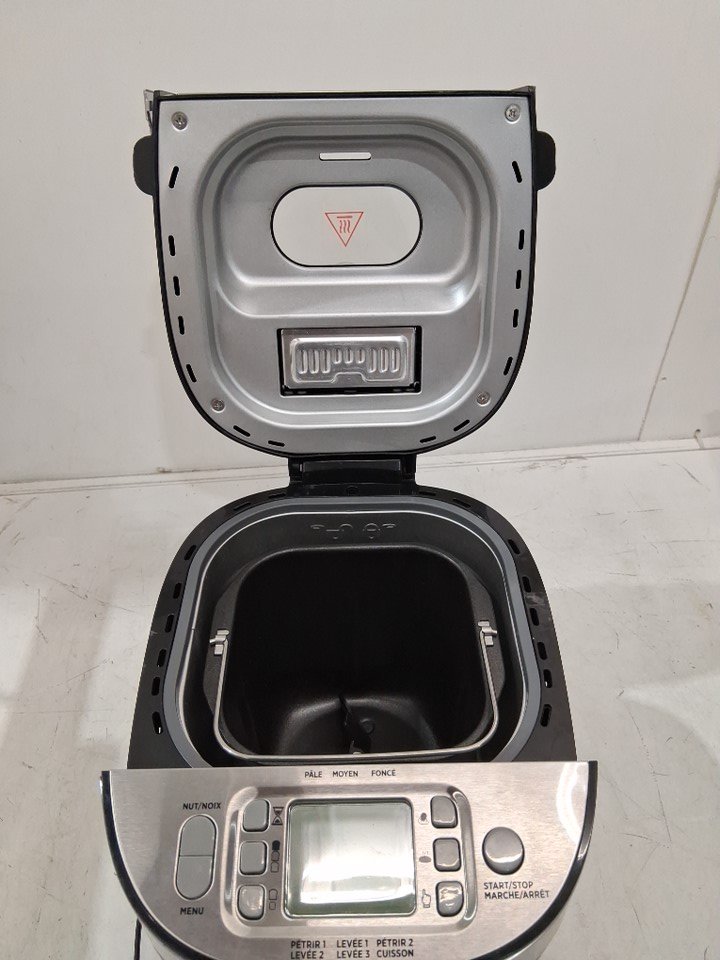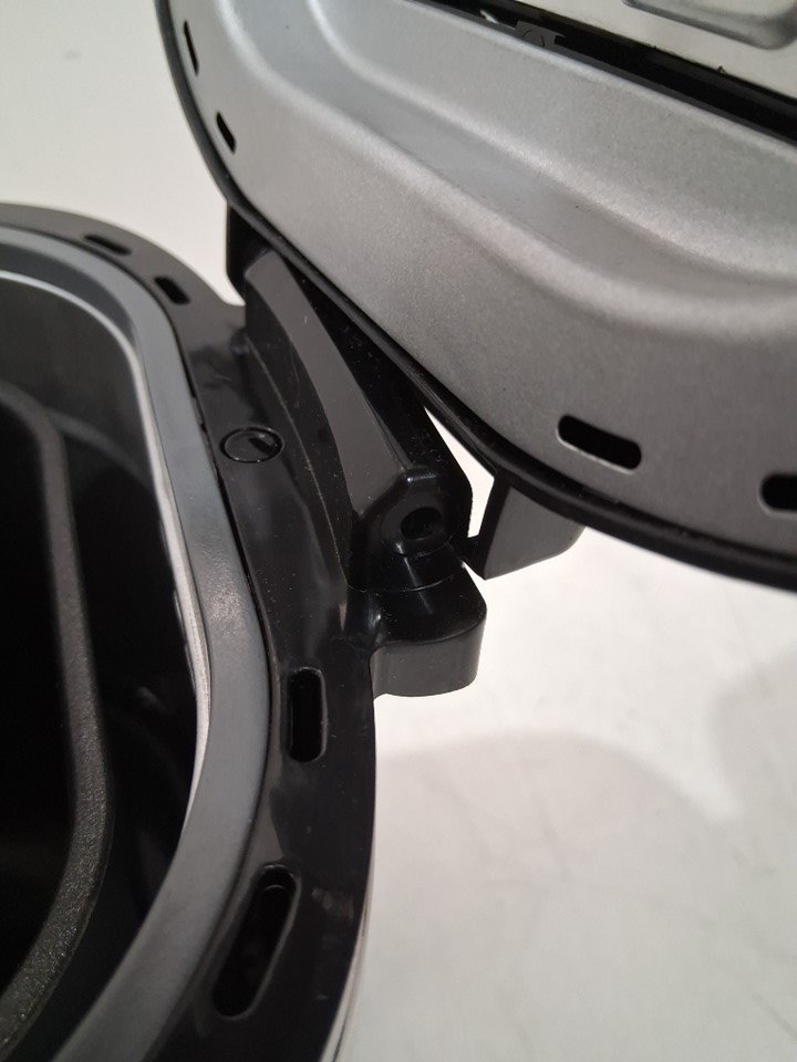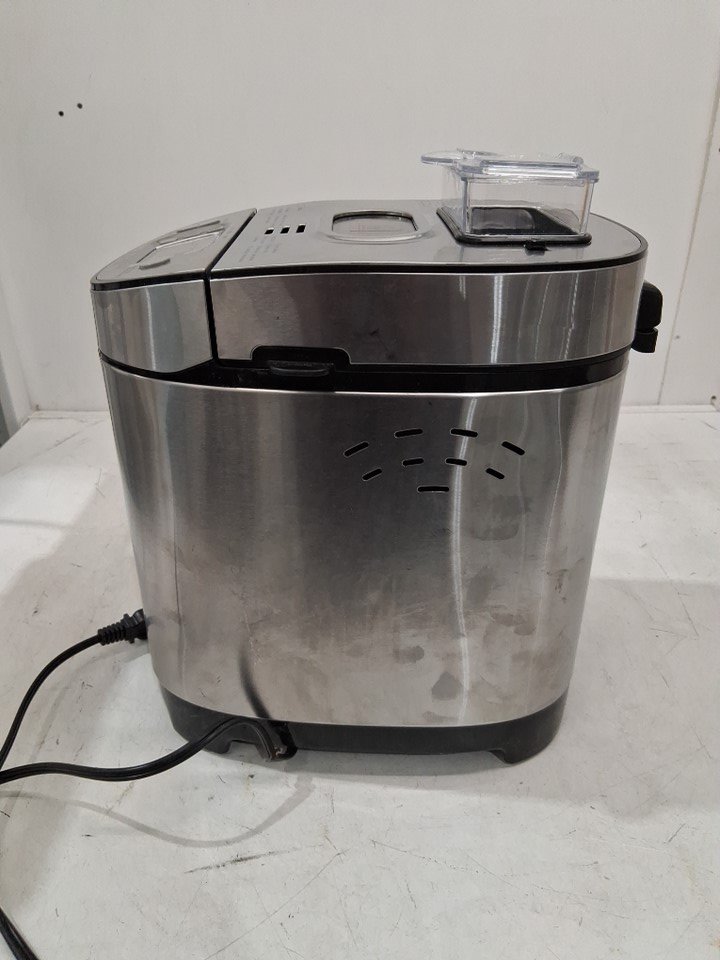 The lid is missing a screw on one side, one part of the metal is popped out of place on the side of the lid, and there is a small dent in the front of the machine. The power cord is also slightly damaged and some of the copper wiring is visible, but power appears to function without any issues - see photos. Outside of the cosmetic damage, appears to be in good condition without any signs of use or obvious issues.