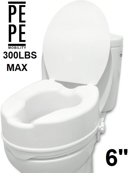 PEPE Mobility Raised Toilet Seat with Lid - 6" / 300 lbs max - white - (model: p30005)