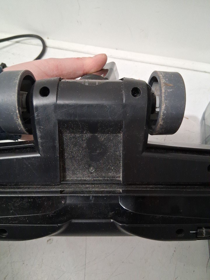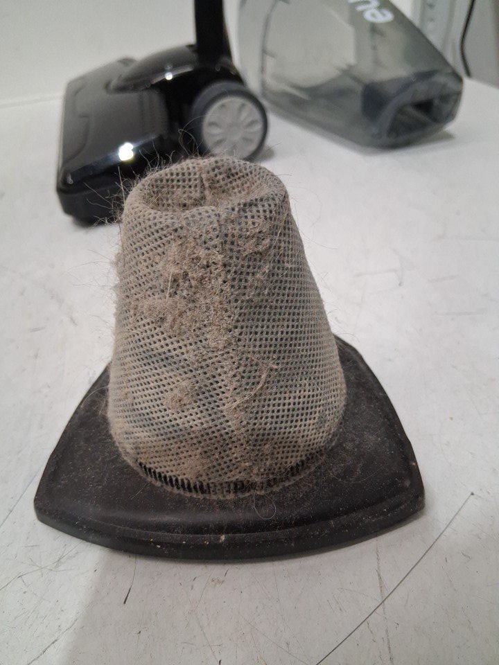 item is missing skinny hose attachment, item also has light signs of use, dust and debris and scuffing in and on vacuum and vacuum filter ( see photos)