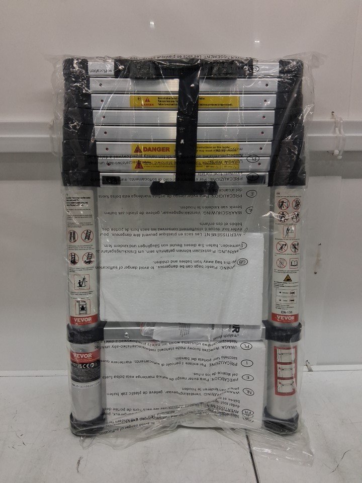 Aluminum Telescopic Extension Ladder - 8.5FT - 330lbs CAP - SILVER (model: ml-1026ph)