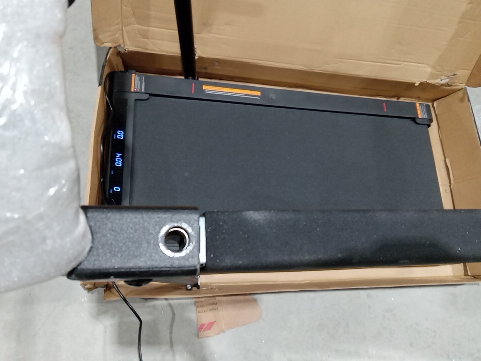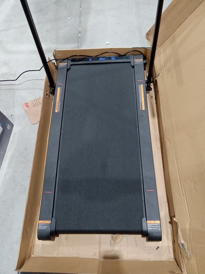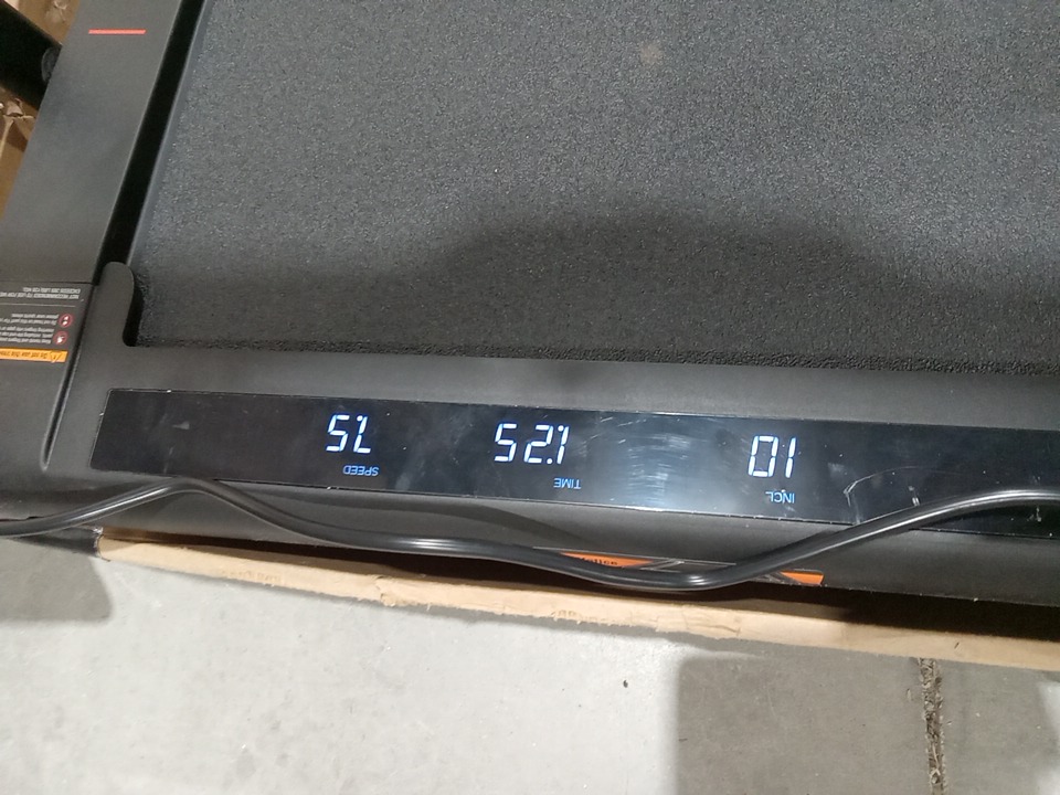 this item has been tested for power and is confirmed to be working, however the treadmill does not run and makes a loud noise when the speed is turned up, the incline feature works without issue, this seems to be due to an internal issue with this treadmill, this will need to be fixed with repairs in order for this treadmill to be used, however we are unsure if repairs will fix this issue, the button to lower the incline is damaged, but still functionable. see photos.