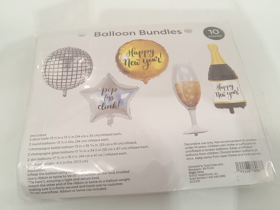 10pC Happy New year balloon bundle SET with Weighted disc