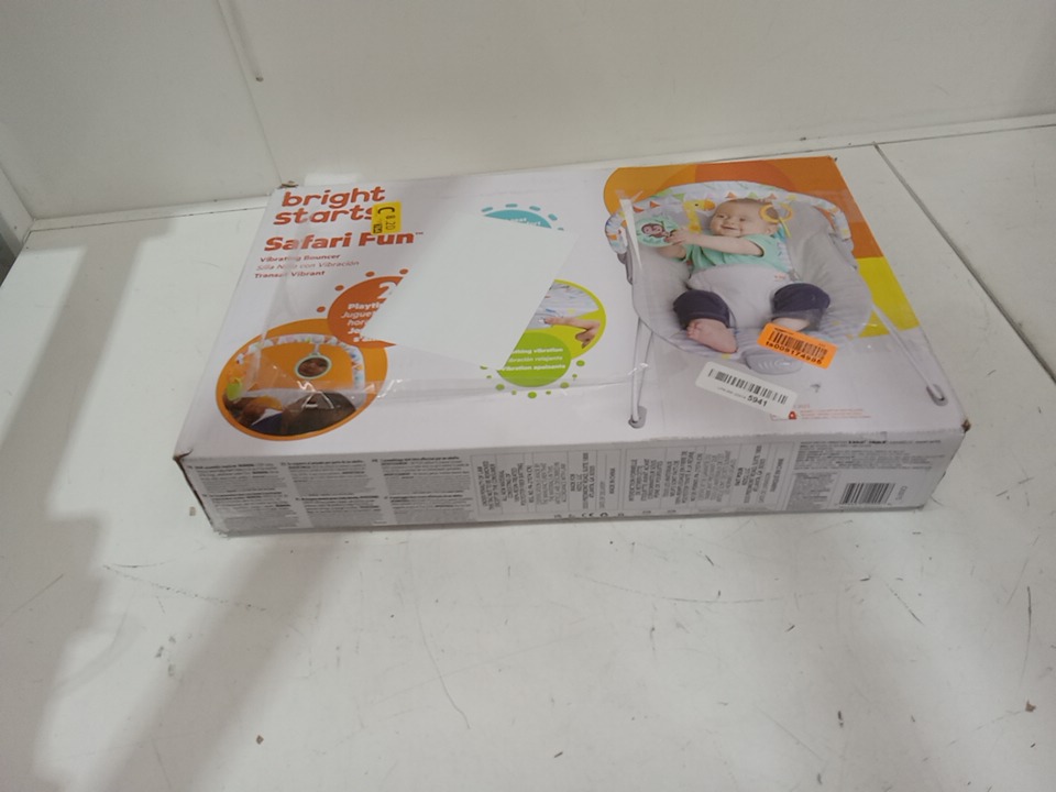 bright starts vibrating bouncer with 3-point harness and removable toy bar - 20lb max - safari fun (model: 12204)