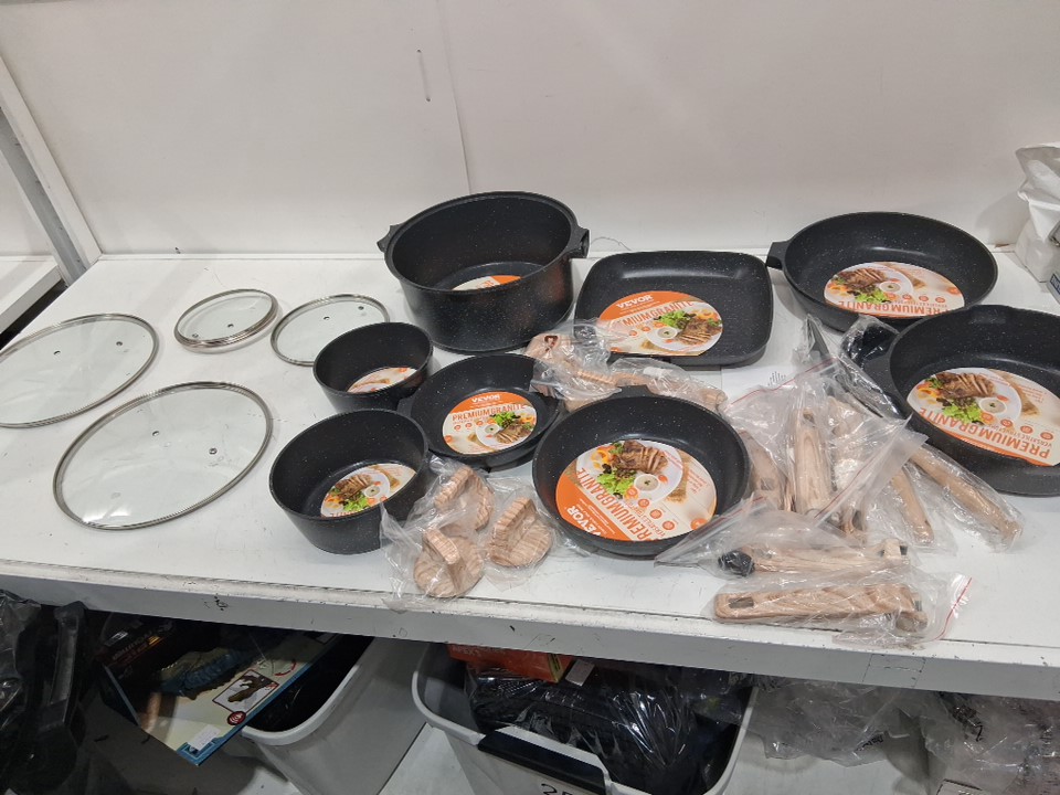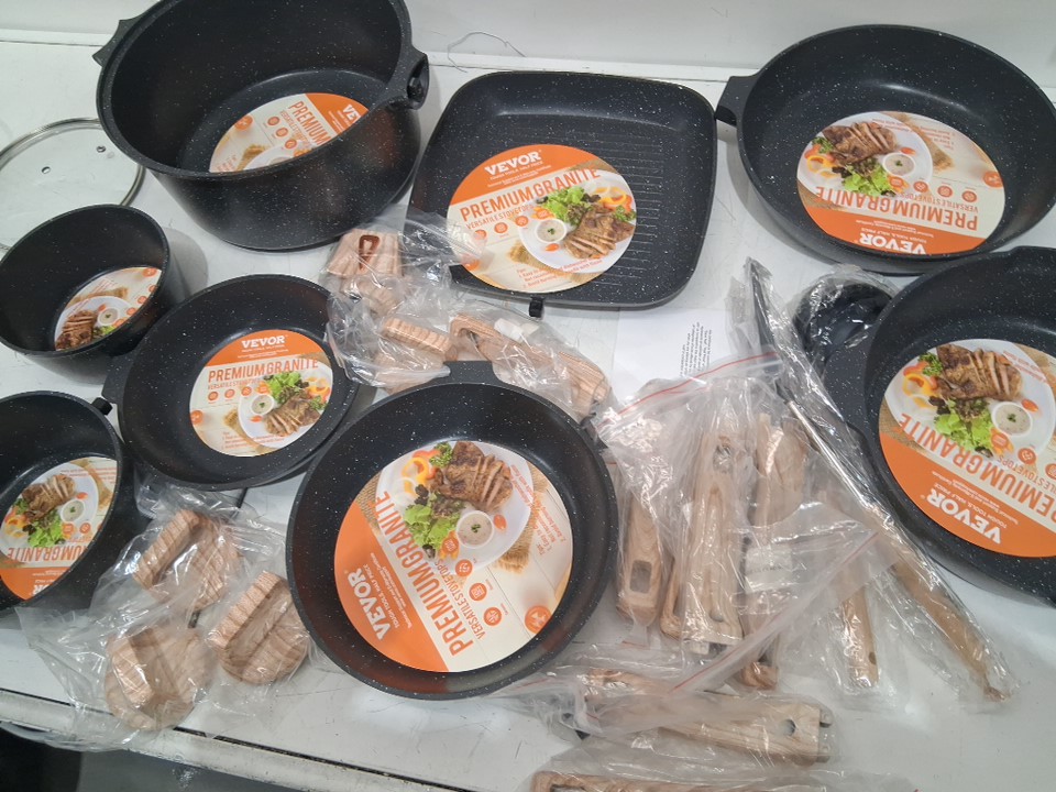 14pc granite nonstick pots and pans kitchen cookware - black (model: ss-ly-07)