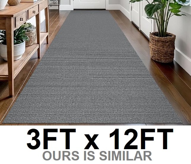 long hallway runner nonslip rug - 3ft x 12ft - grey