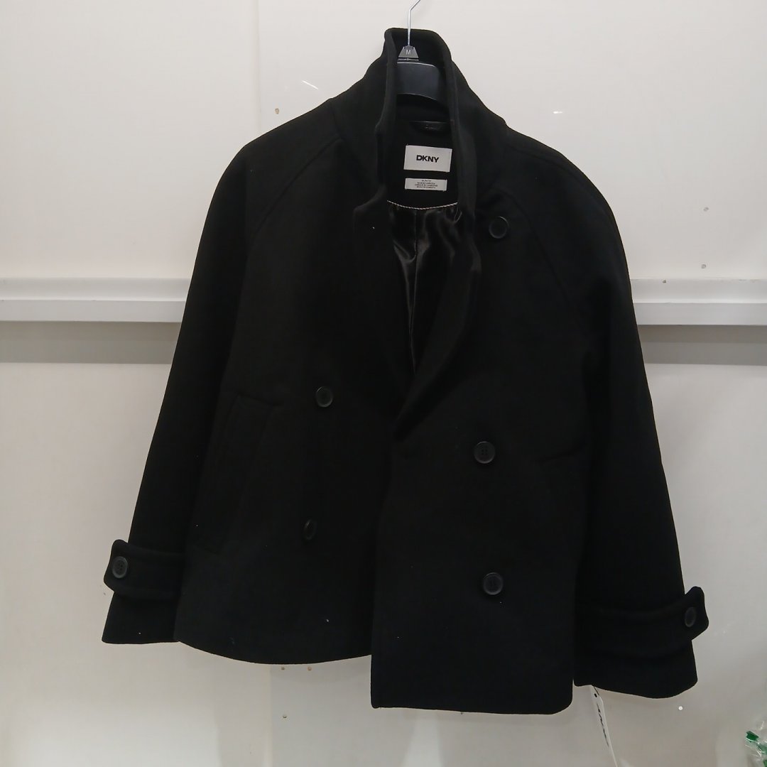 WOMEN'S DKNY SHORT FAUX WOOL BUTTON UP JACKET - MEDIUM - BLACK (MODEL: DL5MWX27)