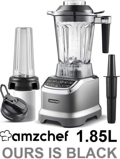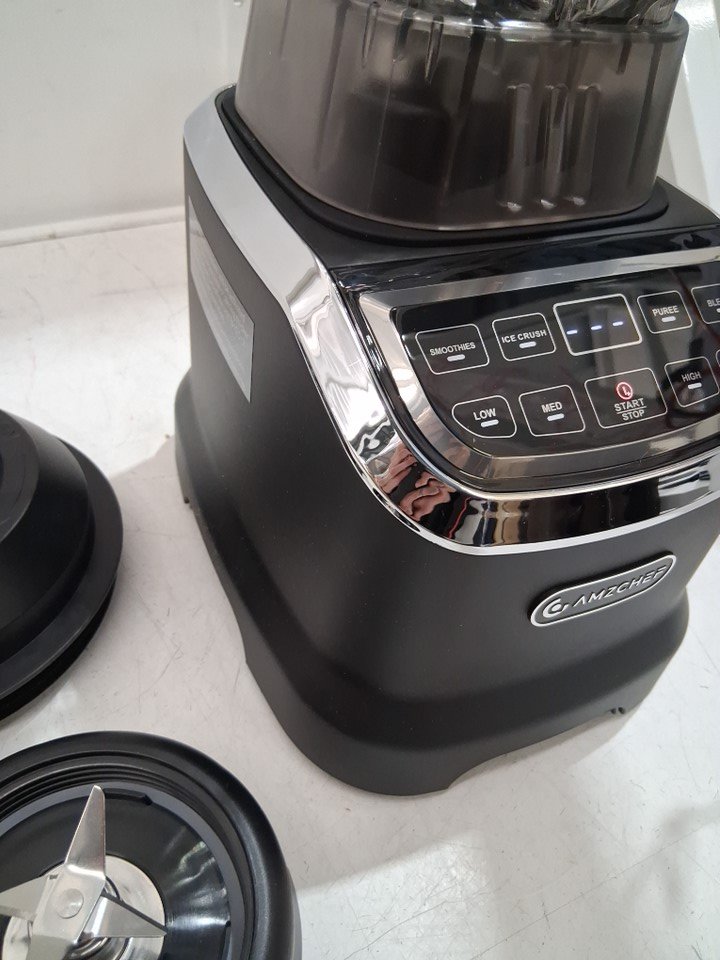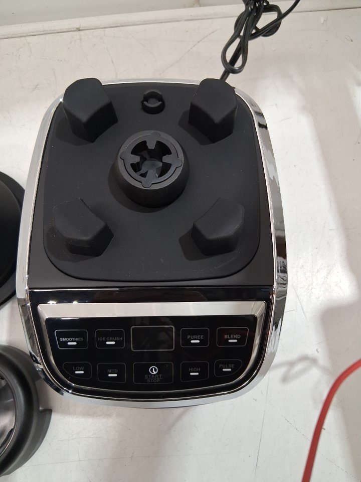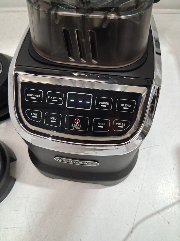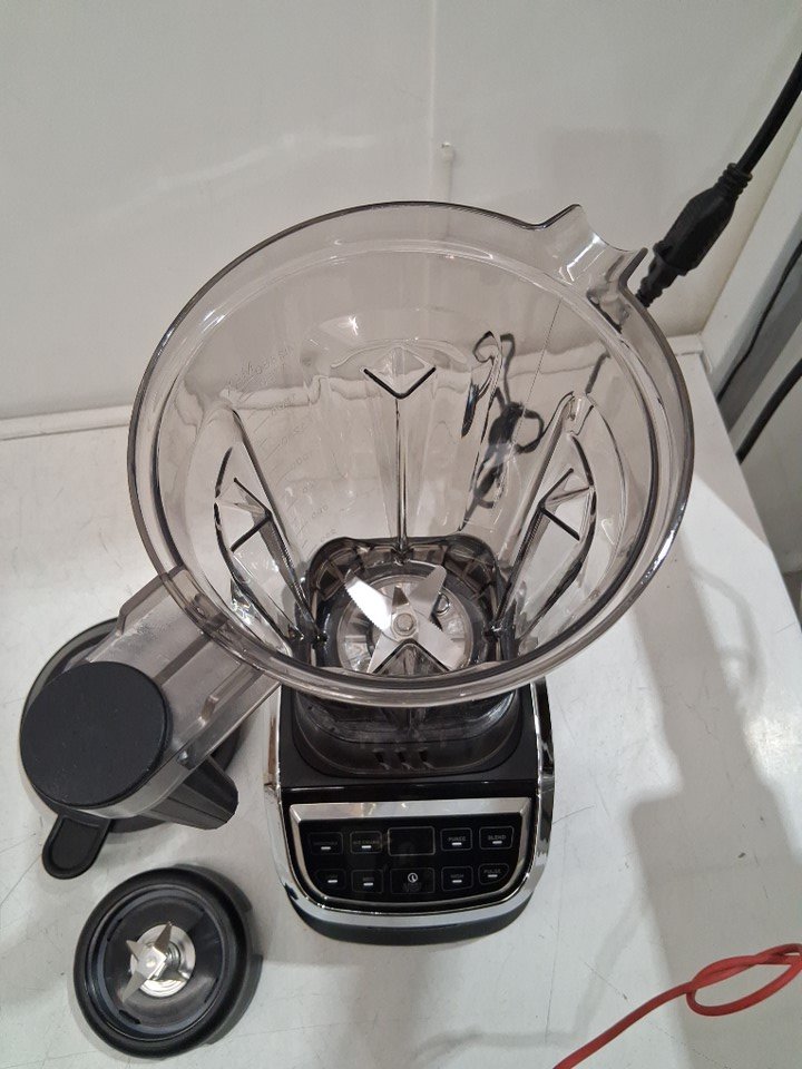 please note that the smaller blender cup and the black attachment are missing, the larger blender, base and two lids are present