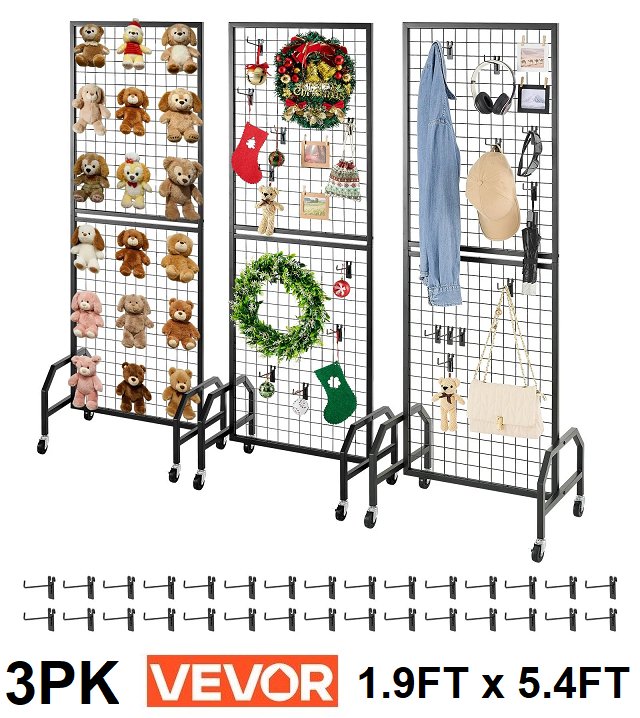 3pk vevor wire grid wall panels towers - 1.9FT x 5.4ft - black (model: yd0054-3)