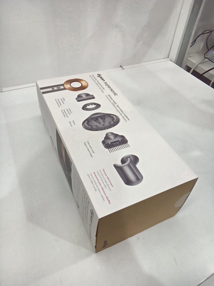 DYSON SUPERSONIC HAIR DRYER WITH STYLING CONCENTRATOR, SMOOTHING NOZZLE AND DIFFUSER - bright nickel and copper - (model: hd07).
