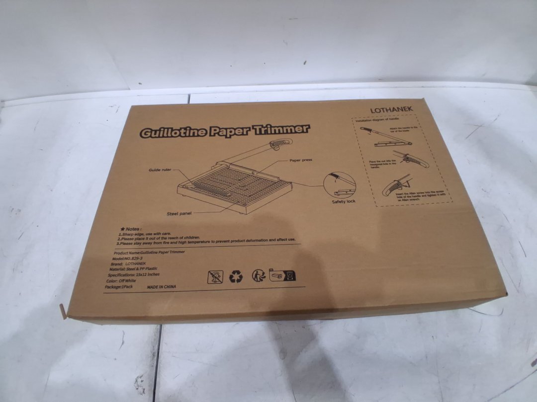 LOTHANEK Guillotine Paper Cutter 10-Sheet Trimmer WITH Auto-Press Clamp & Magnetic Ruler - 15" x 12" - WHITE/BLACK (MODEL: 829-3)