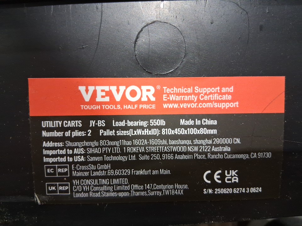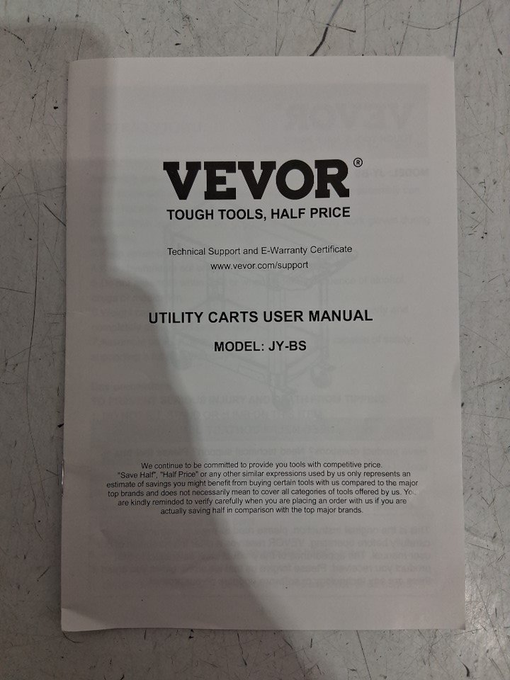 Utility Service Cart - 2 Shelf - 37.4" x 25.6" x 33.5" 550 LBS MAX- Black (MODEL: JY-BS)