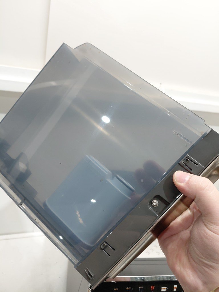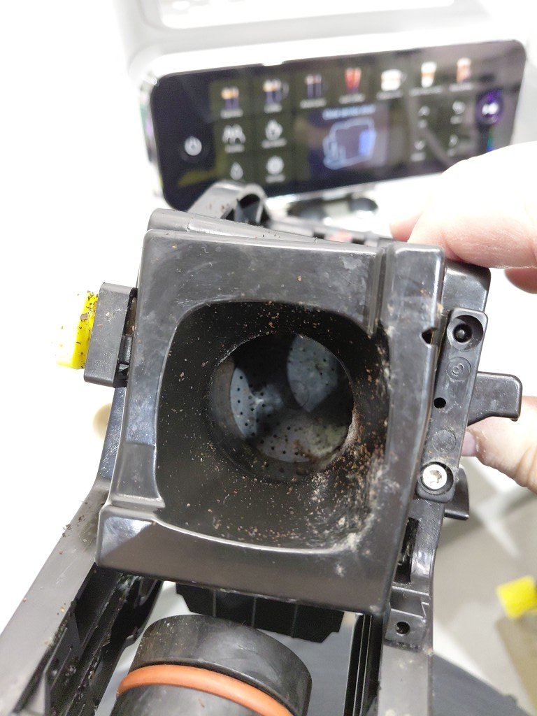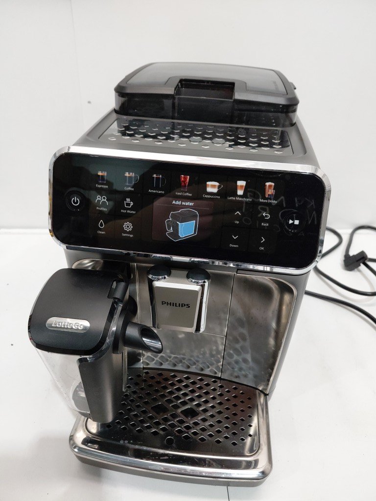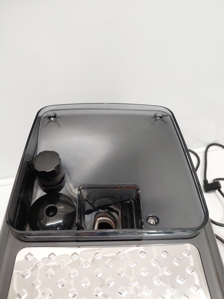 previously used (coffee residue & stains) has a crack on the bottom missing bean flap tested for power.