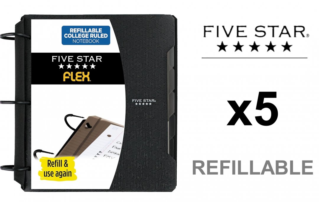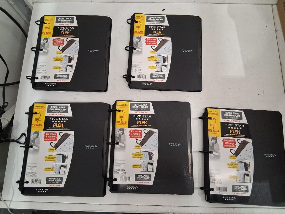 5 Five Star Refillable Graph Ruled Notebook with Math Tools - 11.5" x 10.75" - Black