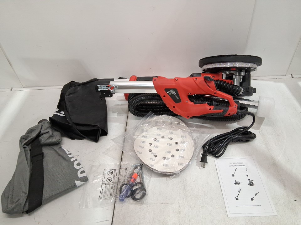 xdovet Electric adjustable Drywall Sander with LED Strip Light, Long Dust Hose, Storage Bag - 850W - Variable Speed 1750 RPM - red/black