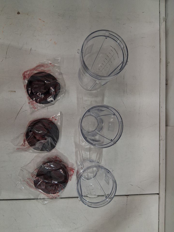 Only the base of the blade shows some minor signs of use. These Nutri Ninja Cups are compatible with Nutri Ninja / Auto-iQ series & Nutri Ninja / Foodi systems. The cups belong originally to a model BL481C, so please make sure that they are compatible with your own.