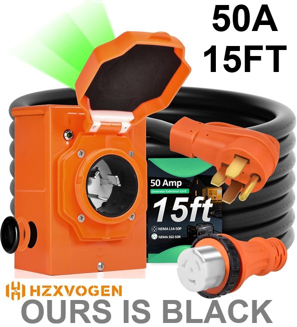 HZXVOGEN 3-Prong Generator Cord and Power Inlet Box Kit with Locking Connector - 50Amps - 125/250V - 15 Feet