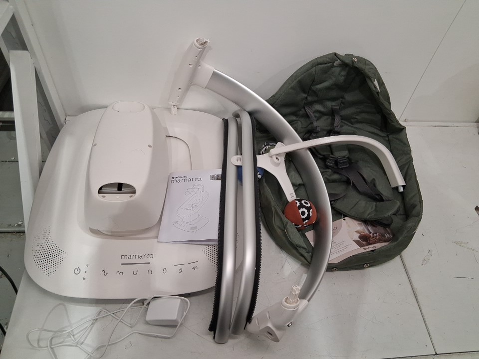 There are a couple of small stain/scuff marks on the base of the smart swing due to previous use, most if not all of the stains should come off after being wiped down. (see photos) Tested for power and function.