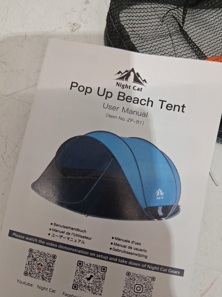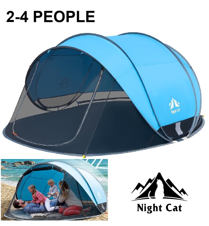 Night Cat Pop-up Beach Tent WITH Large Sun Shade Shelter for 2-4 Persons - 9.5' x 6.5' - Blue -