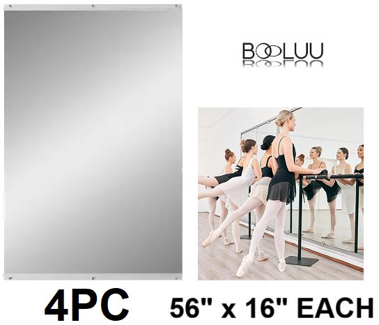 4PC BOOLUU Tempered Glass Full Length Wall Mounted Frameless Home Gym Mirrors - 56" x 16" Each - Silvery