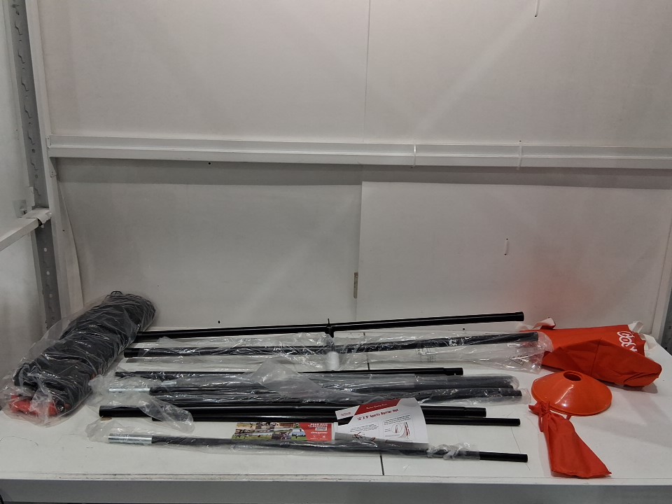 Item has light scuffs/scratches, minor wear from previous gentle use, see photos. Item does not include the flexible rods which support the net on either side, one of the black rods appears to be missing its chrome end cap, there is minor damage to one of the sockets on one the base supports which may affect the item's stability or assembly, see photos.