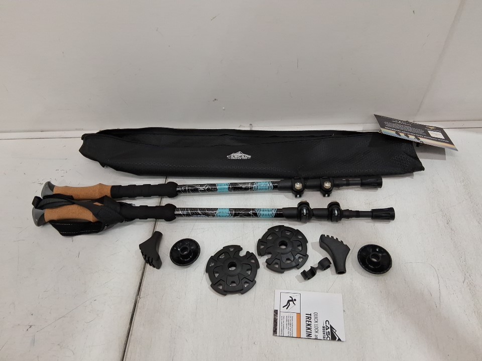 2pk CASCADE MOUNTAIN TECH ALUMINUM TREKKING POLES LIGHT WEIGHT & ADJUSTABLE - 26.5" x 55" - CORK, BLACk and blue