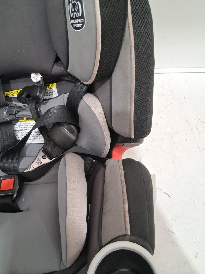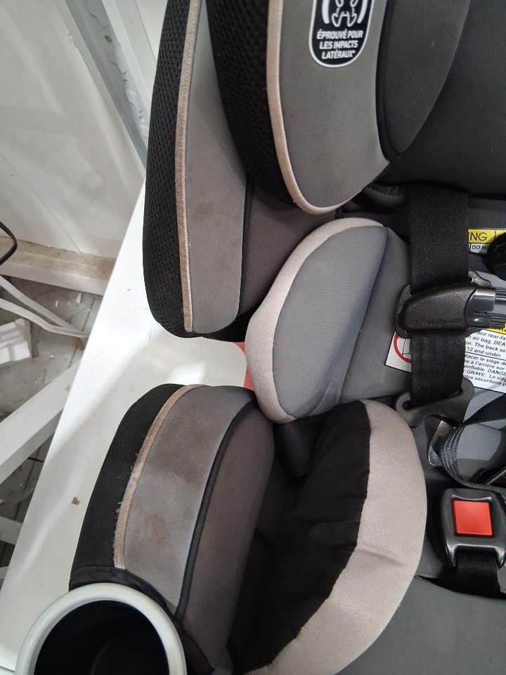 Seat has stains and Residue on Seat and Fabric, has fraying/burring on plastic, see photos