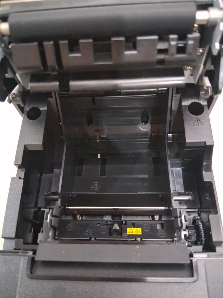Tested for basic power. Please note both the power and error light are on to indicate that no paper is loaded. There were no visible errors found during inspection.