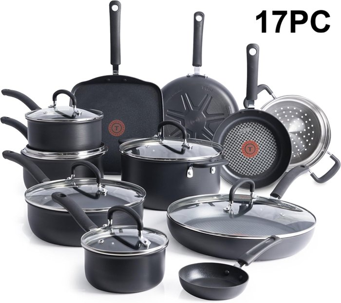 17PC T-Fal Ultimate Hard Anodized Non Stick Cookware Set - Black (MODEL:513-5085)