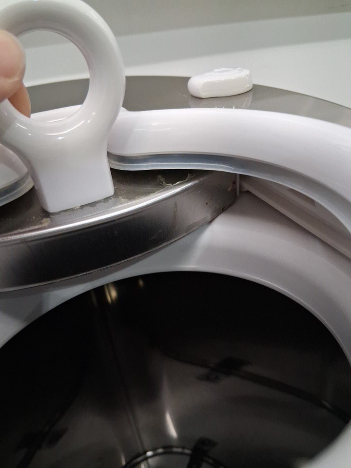 Some residue on the lid and in the container from prior use. See photos.