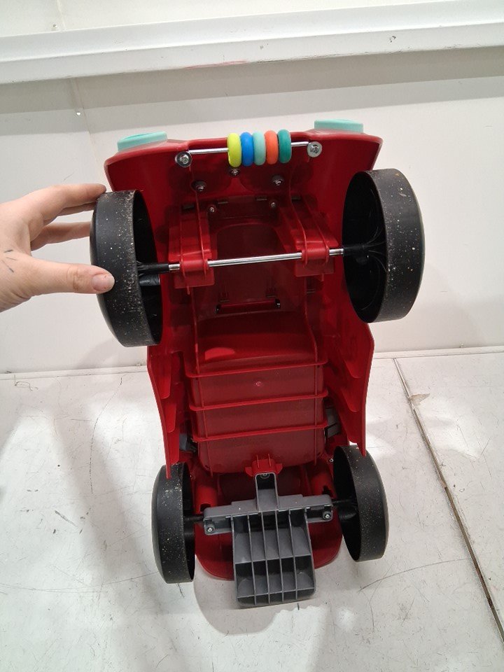 item has some dirt and scuffs on wheels from previous use