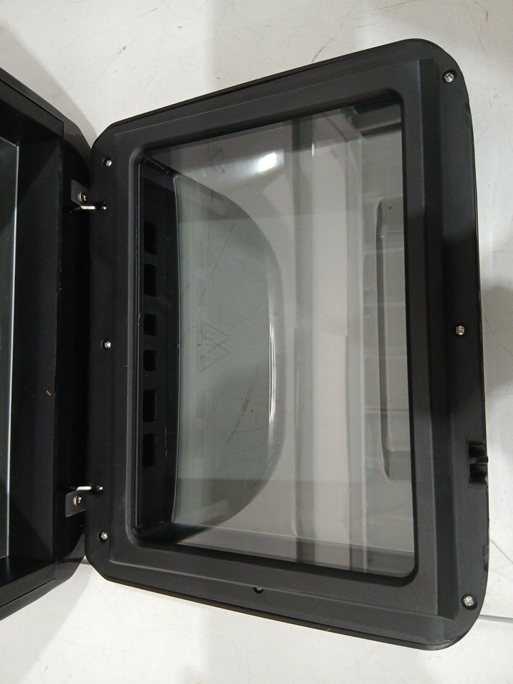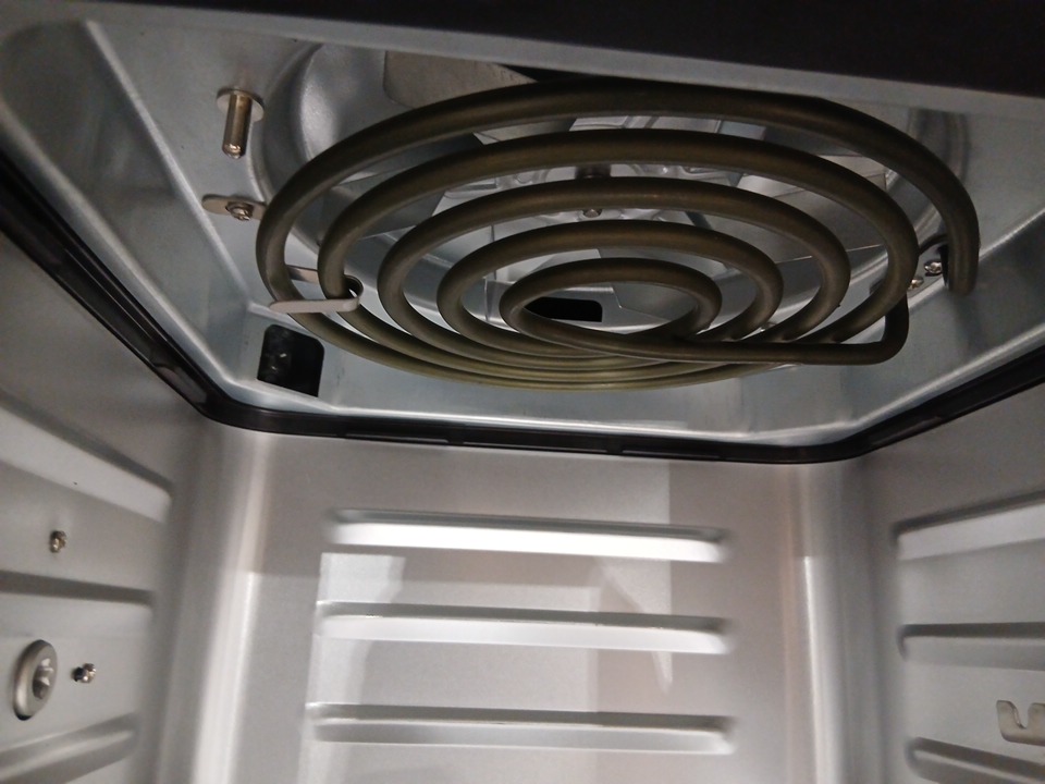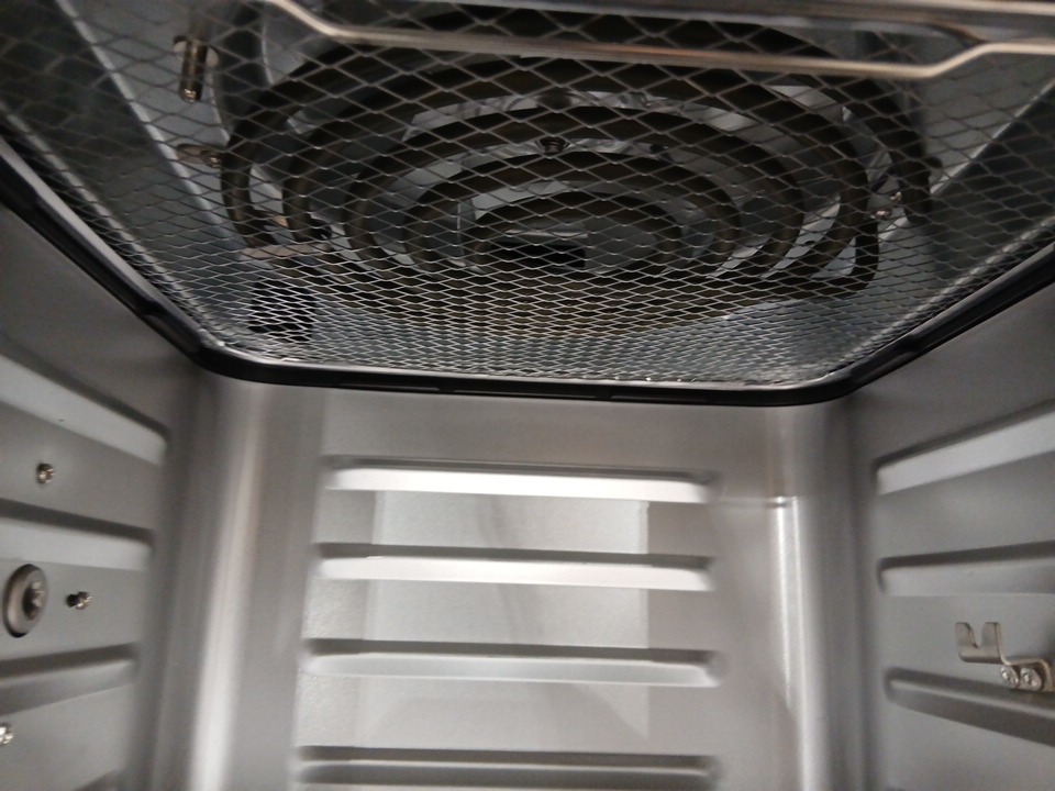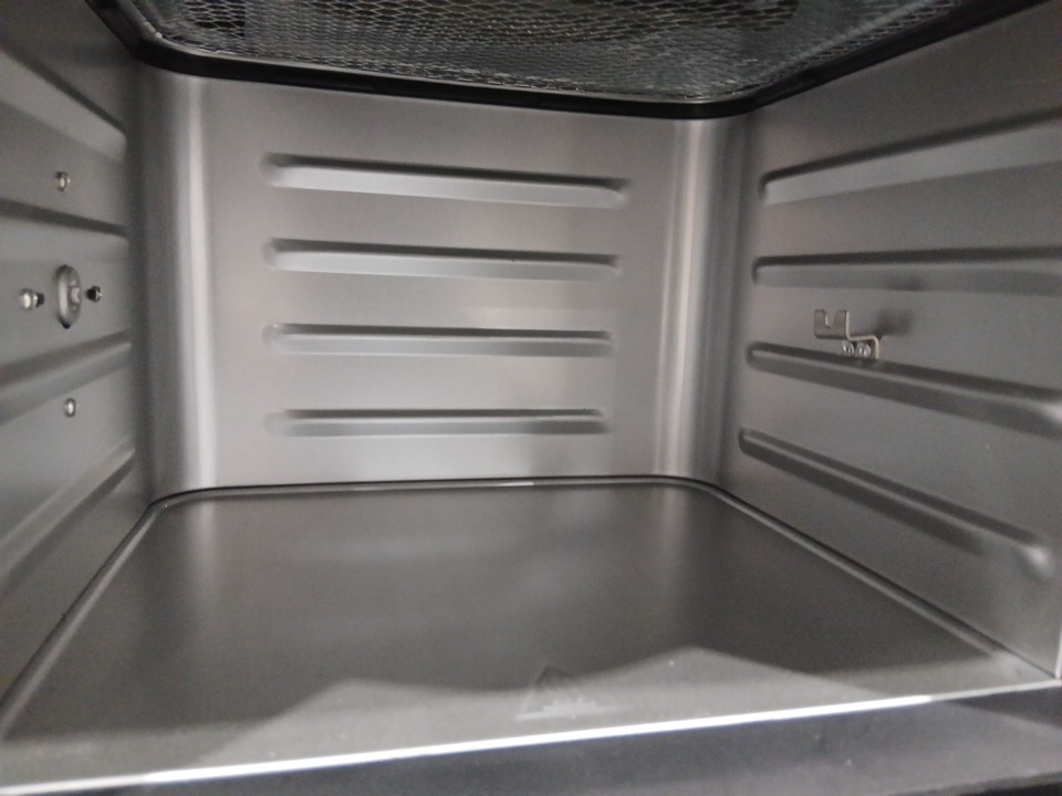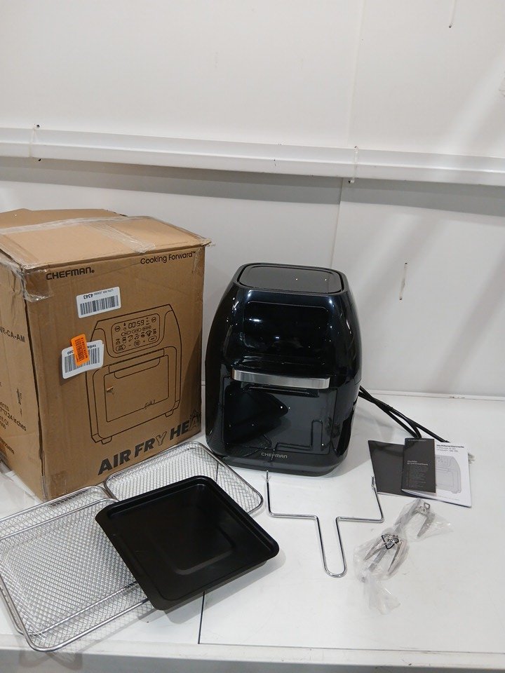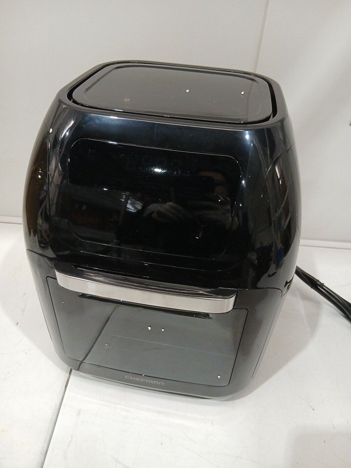 item appears new but has some minor dirt, fingerprints and scratches on outside of air fryer. tested and working for basic power.