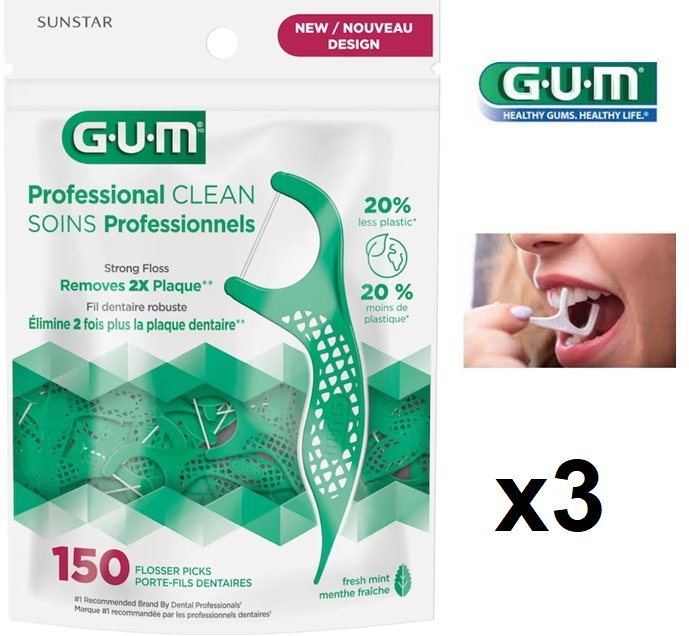 3 (150PK) GUM FLOSSER PICKS, ADVANCED CARE TOOTH FLOSSING KITS